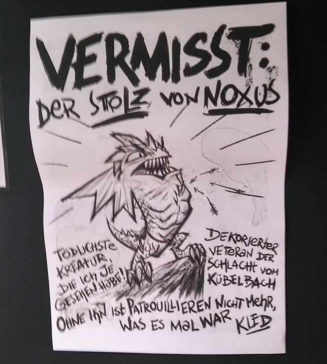 Here we learn that this creature is in fact a “magical mount”, that is now no longer a coward, but “runs tirelessly and only straight”, so this lil guy is getting some strange recognition after the last poster. So from this we can infer that Kled is searching for his mount who apparently smells worse than Sion. Let’s see what the last poster can show us.